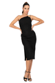 Highlighted by a refined gold floral accent and crafted from luminous stretch fabric, it embraces your silhouette with comfort and grace. The refined right slit enhances your movement, making this dress an ideal choice for dazzling on the dance floor or attending memorable events.