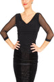 Draped Neckline Top With Tulle Sleeves (M) (Black)