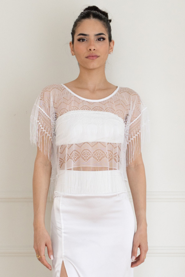 White Sheer Lace Top With Fringe (S)